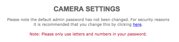 Upon browsing to the camera on port 80, I am prompted to enter credentials. Good old ‘admin | admin’ works as suggested in the operating manual. I’d much rather see a ‘randomly’ generated password printed on a sticker on the camera, but at least a warning to reset the password is displayed first thing after logging in. This feature needs to be tested further, so I make a note to look at this during the vulnerability analysis phase.