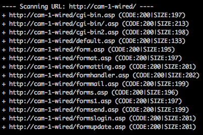 $ dirb http://cam-1-wired/ -X .asp /usr/share/dirb/wordlists/big.txt \