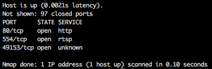 The results for port 554, while unknown to nmap, show that the ‘Webs’ server is requesting credentials before serving up any content.